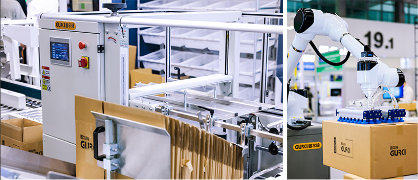 本次展會,固爾琦聚焦“高效、柔性、智能”三大關(guān)鍵詞,展示了覆蓋倉儲分揀、智能打包、協(xié)作機器人碼垛等環(huán)節(jié)的標(biāo)桿性設(shè)備,打造從商品入庫到出庫的全鏈路智能化作業(yè)流程。