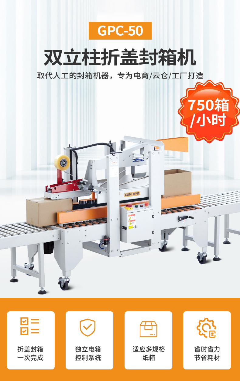 雙立柱折蓋封箱機是在單立柱折蓋封箱機的基礎(chǔ)上進行優(yōu)化的產(chǎn)品,雙立柱明顯體現(xiàn)了機器的牢固性、穩(wěn)定性,配有獨立電箱控制系統(tǒng),提高安全系數(shù),同時雙立柱還可根據(jù)客戶產(chǎn)品特性增加上部驅(qū)動系統(tǒng)。該款封箱機廣泛應(yīng)用于食品、醫(yī)藥、飲料、煙草、日化、汽車、線纜、電子等行業(yè)。