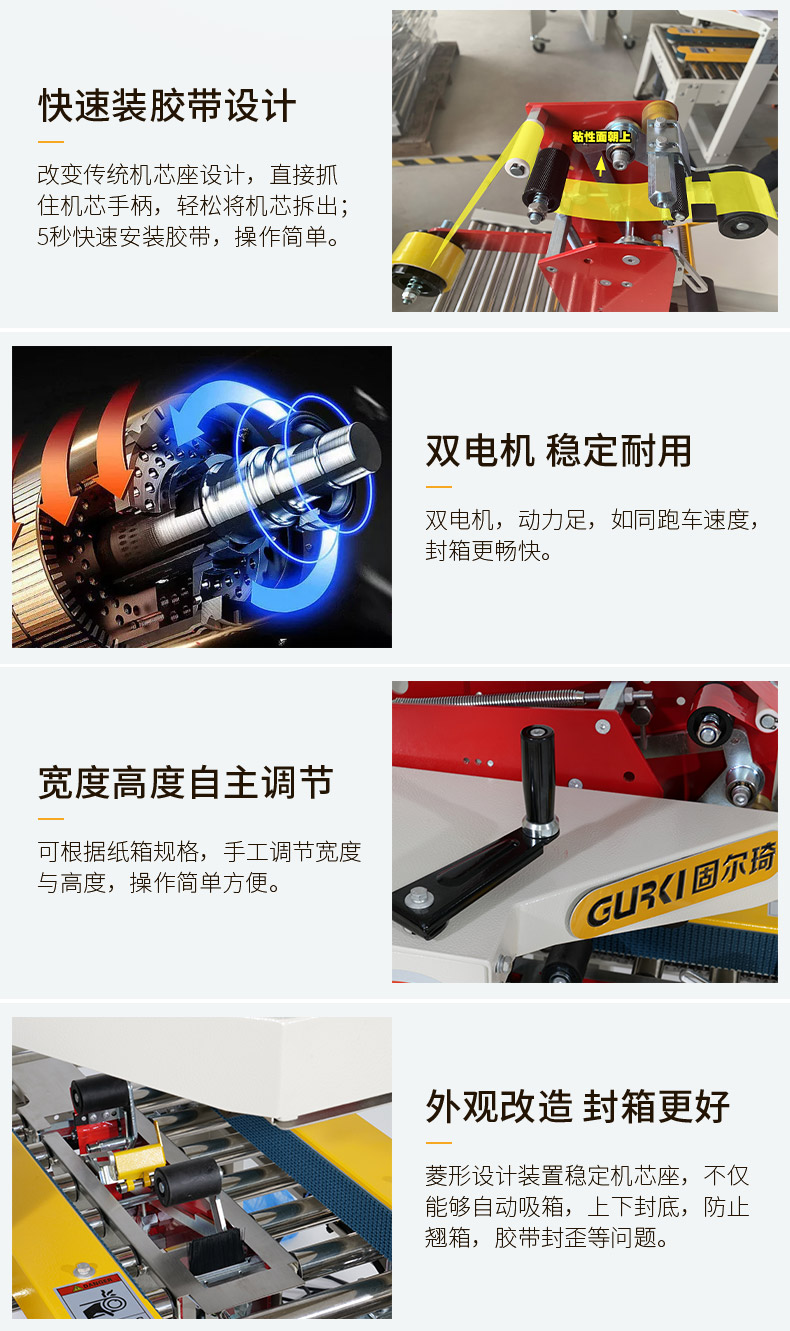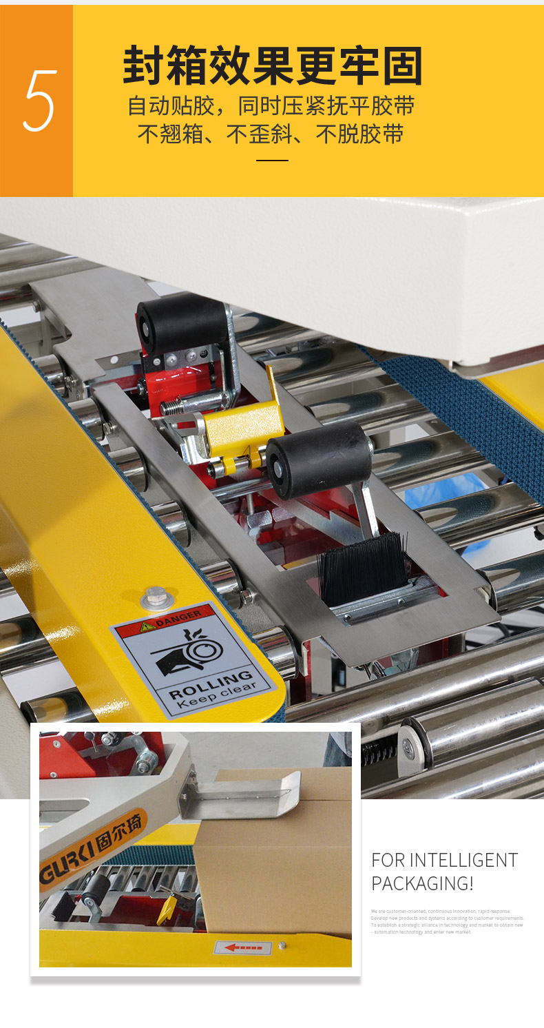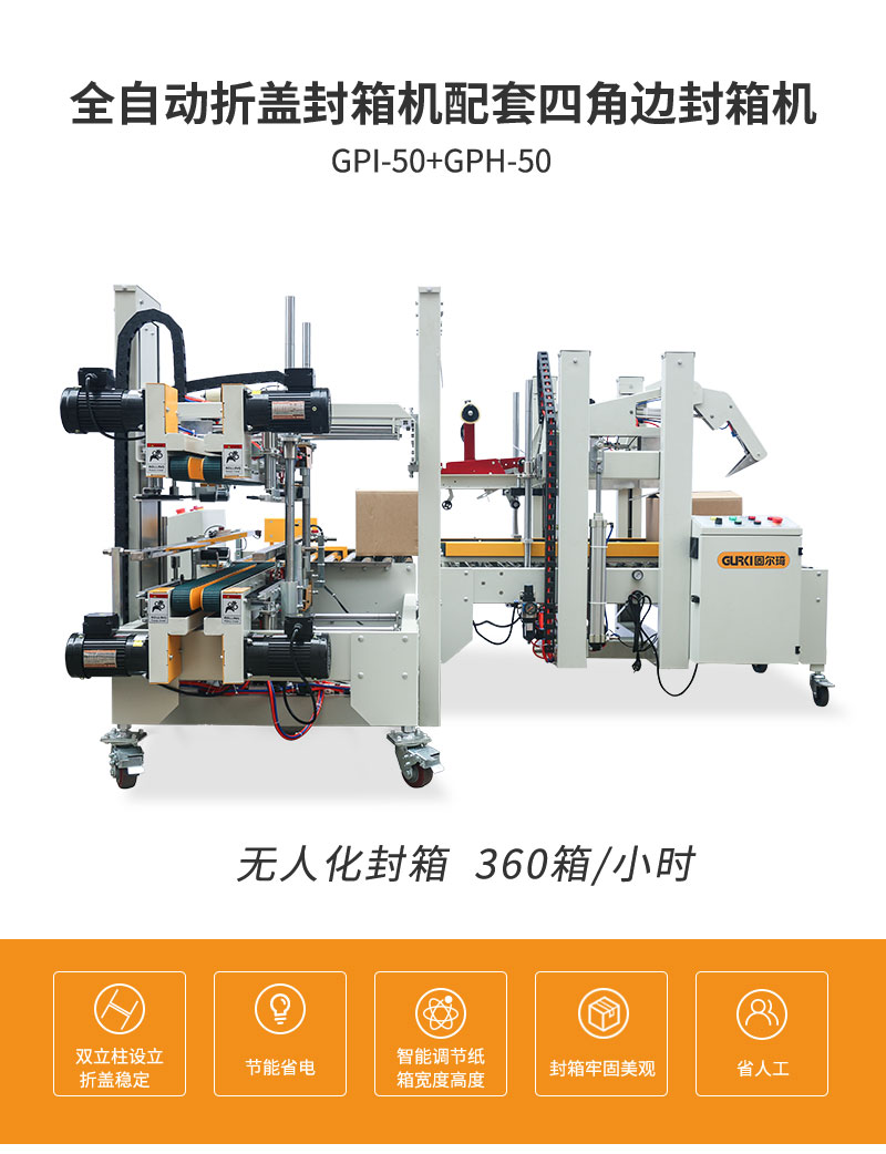 全自動(dòng)折蓋封箱機(jī)配套全自動(dòng)四角邊封箱機(jī)適合同一時(shí)段對(duì)多種規(guī)格紙箱進(jìn)行全自動(dòng)工字型封箱,無(wú)需人工再調(diào)節(jié),不僅節(jié)省人工還提高效率。該款封箱機(jī)廣泛應(yīng)用于食品、醫(yī)藥、日化、玩具、電子、印刷等各行業(yè)。