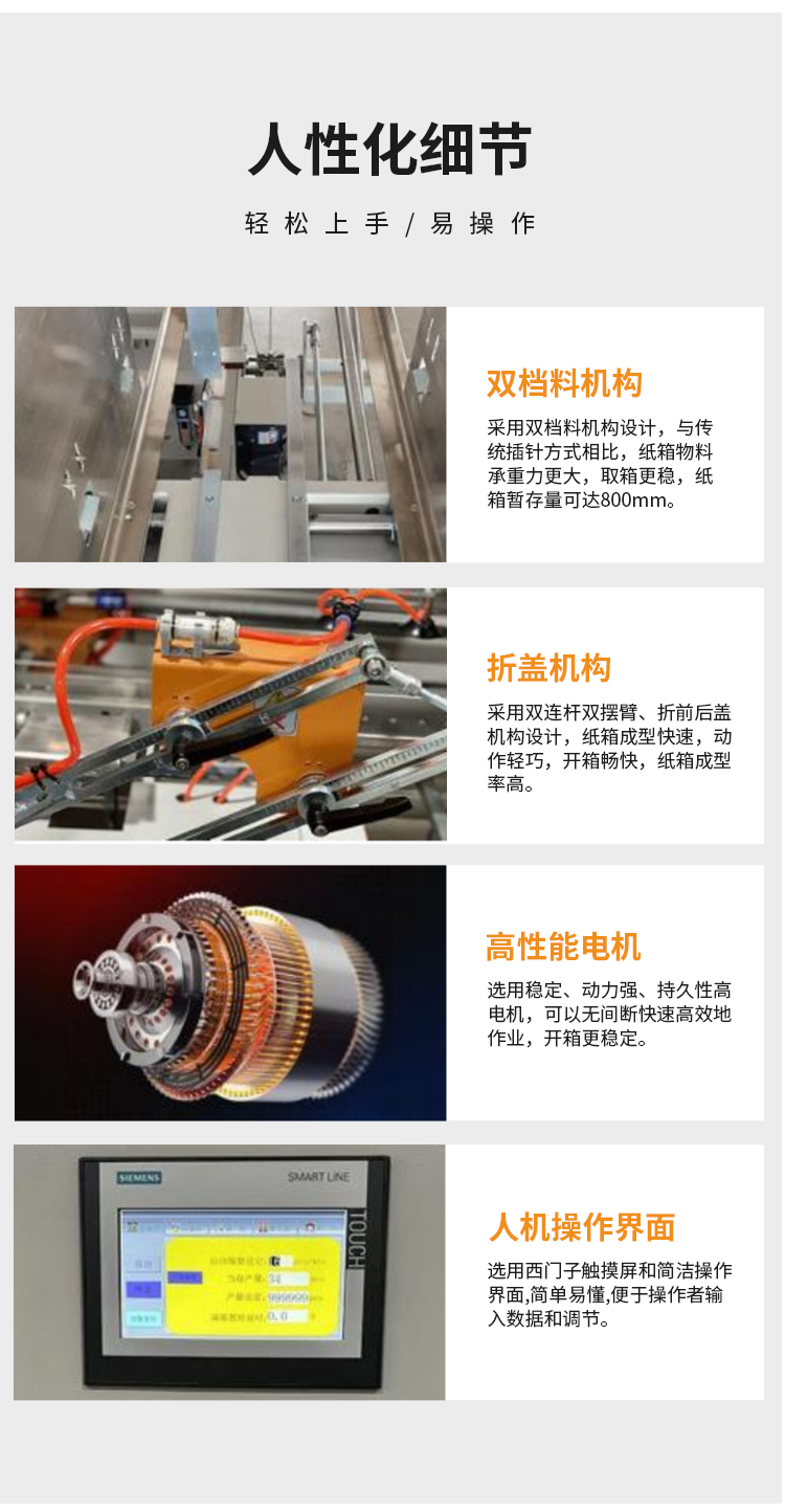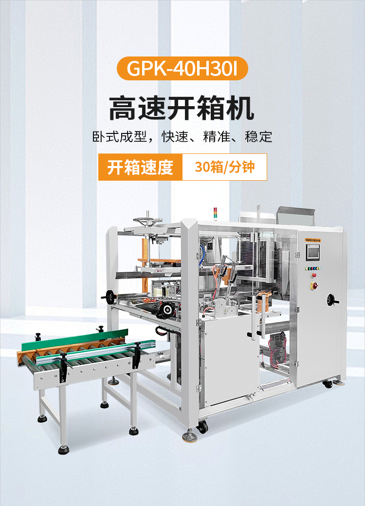 GPK-40H30l 高速開(kāi)箱機(jī)具備多年實(shí)戰(zhàn)技術(shù)經(jīng)驗(yàn),采用凸輪驅(qū)動(dòng)系統(tǒng)與連桿結(jié)合控制整個(gè)機(jī)器動(dòng)作,機(jī)械動(dòng)作快速、精準(zhǔn)、穩(wěn)定,該機(jī)器體積小,操作簡(jiǎn)單,調(diào)節(jié)方便。 該款開(kāi)箱機(jī)廣泛用于批量生產(chǎn)包裝的流水作業(yè),印刷、彩盒、賀卡、相冊(cè)、相框、醫(yī)藥、 電子、日化、化妝品、汽配、五金、食品等大批量生產(chǎn)的行業(yè)。