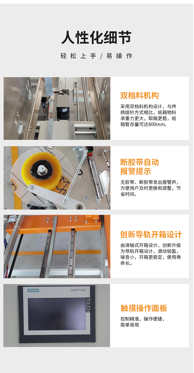 電商封箱機配套快遞貼面單機,封箱貼面單效率日發(fā)8000+。具備一鍵式傻瓜操作,自動化封箱貼面單一步完成,保養(yǎng)簡單,穩(wěn)定性強的特點