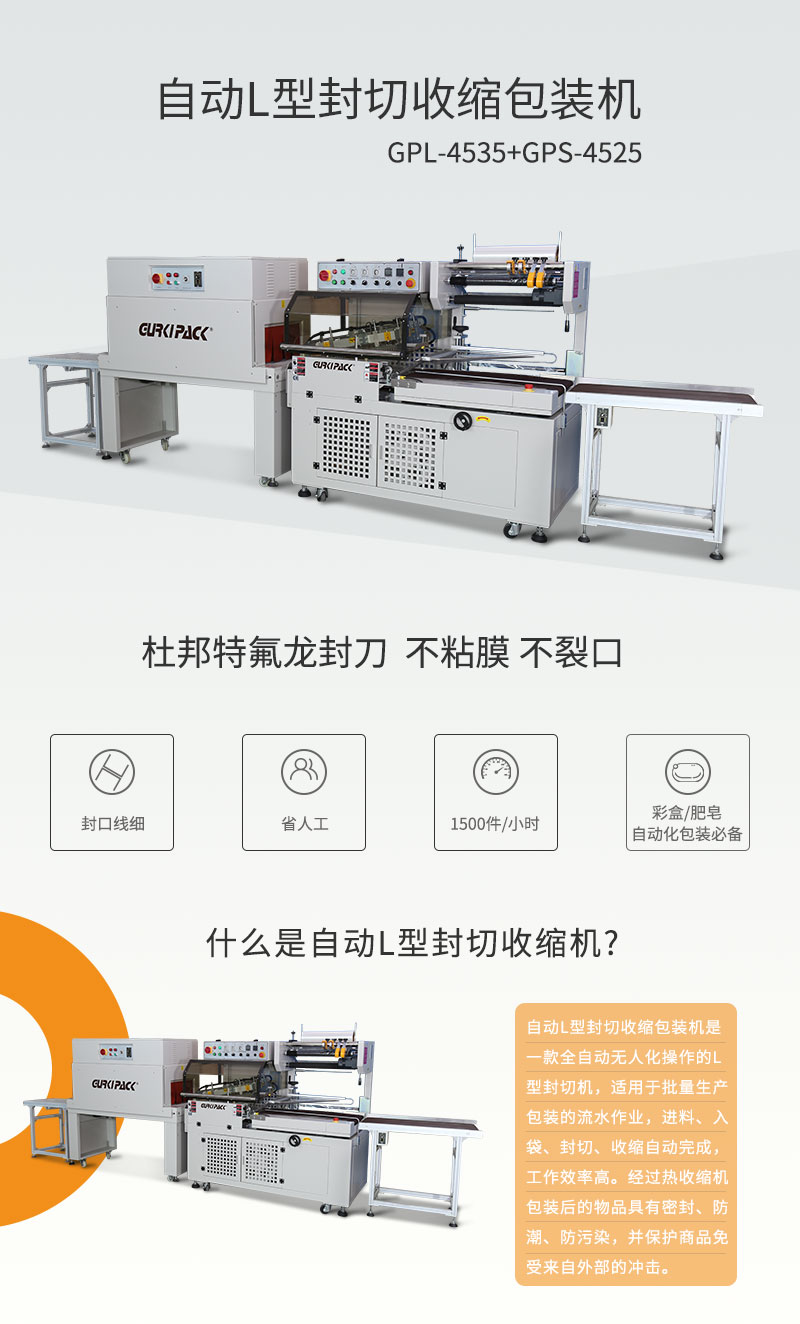 自動(dòng)L型封切收縮包裝機(jī)是一款全自動(dòng)無(wú)人化操作的L型封切機(jī),自動(dòng)送膜打孔、套膜封切,只需手動(dòng)調(diào)節(jié)導(dǎo)膜系統(tǒng)以及手動(dòng)調(diào)節(jié)進(jìn)料輸送平臺(tái),適用不同寬度及高度的產(chǎn)品。該款收縮包裝機(jī)應(yīng)用于食品、軟件、醫(yī)藥、飲料、煙草、日化、汽車(chē)、線纜、化妝品、電子等大批量產(chǎn)品收縮包裝。
