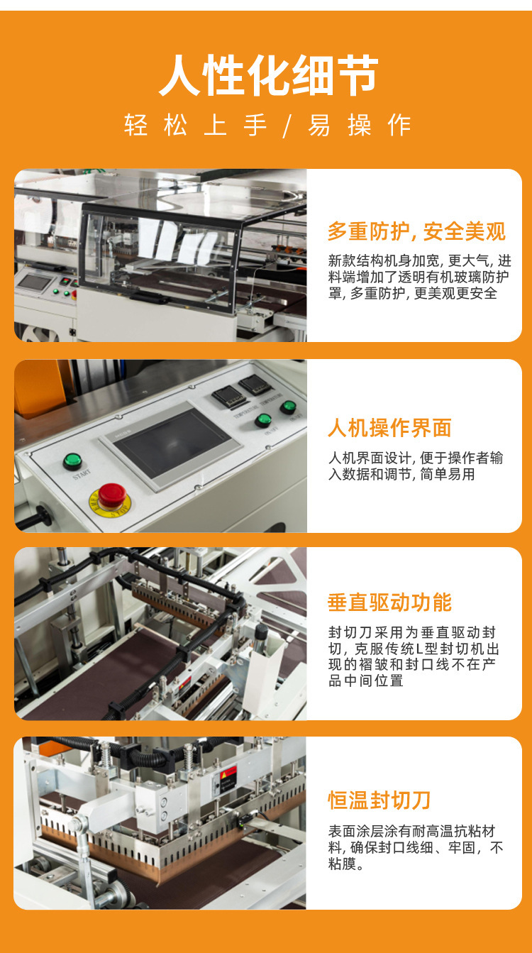 全自動(dòng)邊封收縮包裝機(jī)是針對(duì)化妝品批量性生產(chǎn)包膜而設(shè)計(jì)的一款中速型全自動(dòng)封切包裝機(jī),整機(jī)配有PLC程序系統(tǒng),采用光電對(duì)產(chǎn)品進(jìn)行自動(dòng)偵測(cè),物品長(zhǎng)度自動(dòng)調(diào)節(jié)送料長(zhǎng)度,自動(dòng)對(duì)產(chǎn)品進(jìn)行套膜封切收縮,檢測(cè)開關(guān)控制電機(jī)自動(dòng)卷收廢膜。從而實(shí)現(xiàn)無(wú)人化自動(dòng)包膜的特點(diǎn),該機(jī)工作效率高,針不同大小的產(chǎn)品,速度3-35件每分鐘。