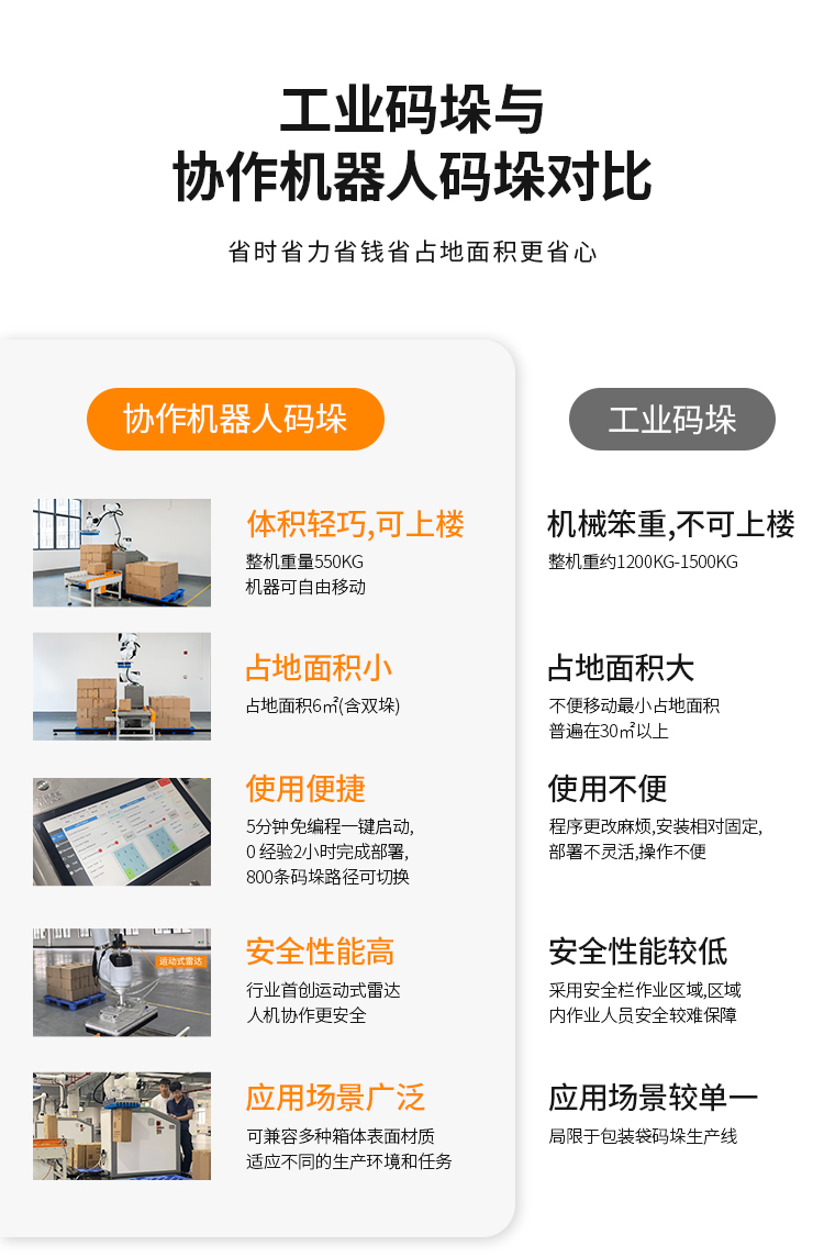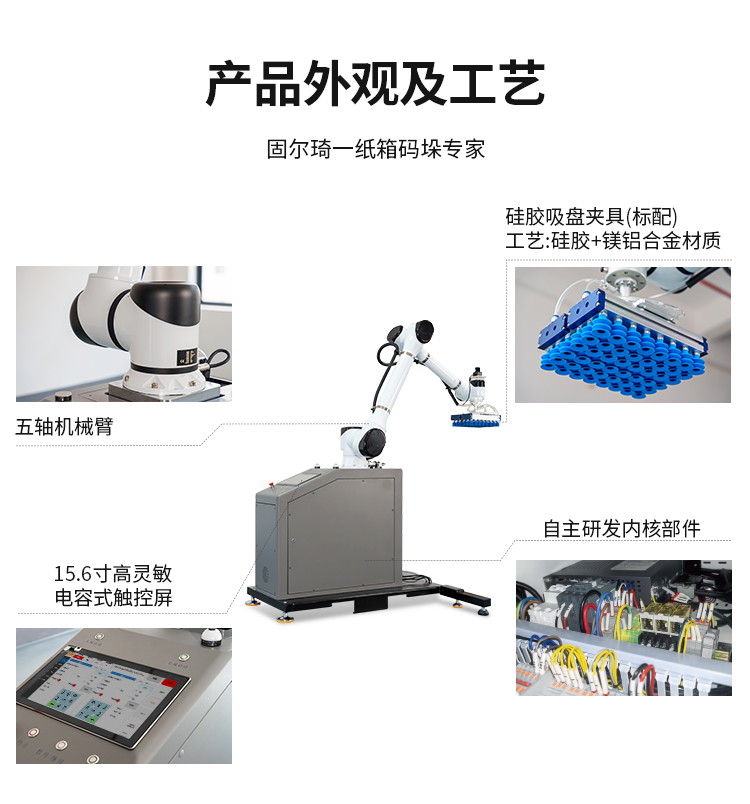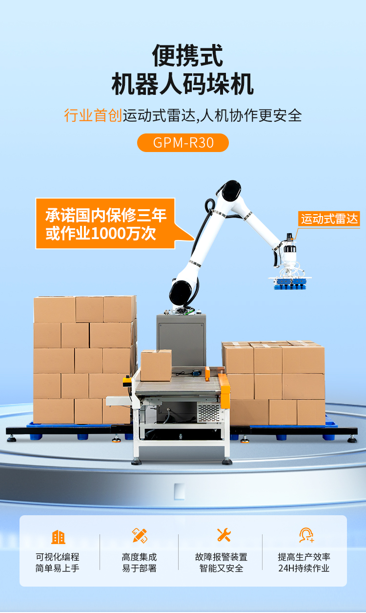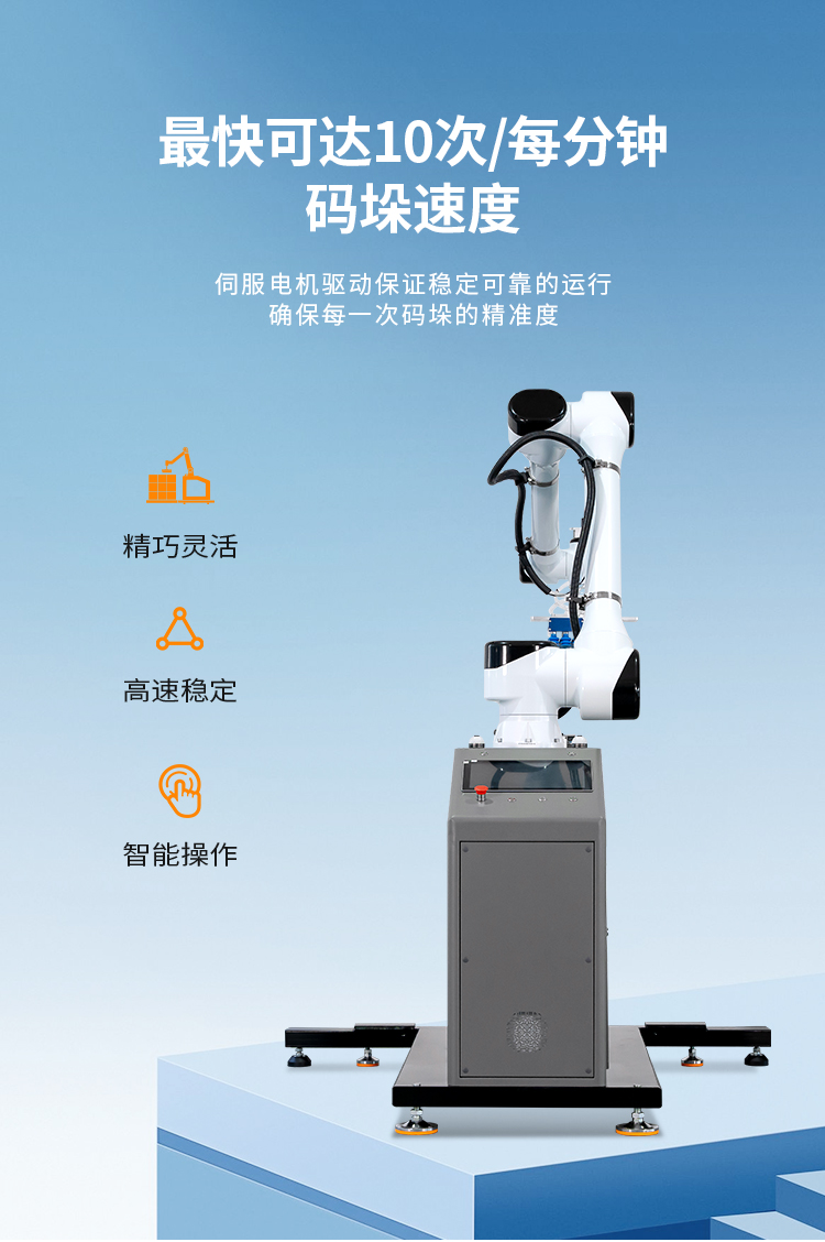 提供3年質(zhì)?;蛘咦鳂I(yè)1000萬次的售后服務(wù)。協(xié)作機(jī)器人碼垛,與人類工作人員緊密合作,提高生產(chǎn)效率、靈活適應(yīng)不同任務(wù)。安全配備傳感器,能自主學(xué)習(xí)、為工作人員創(chuàng)造更安全高效的工作環(huán)境,外形精巧美觀,調(diào)整方便簡單,本設(shè)備采用觸控屏操作,實(shí)現(xiàn)智能化操作管理,簡便、易掌握??纱蟠蟮販p少勞動(dòng)人員和降低勞動(dòng)強(qiáng)度??瑟?dú)立使用也可配套自動(dòng)供棧機(jī)和棧板輸送機(jī)來實(shí)現(xiàn)全自動(dòng)碼垛系統(tǒng),廣泛應(yīng)用于多個(gè)行業(yè)的碼垛工序,如紙箱類、醫(yī)藥類、日用品、食品、飲料、化妝品、金屬制品等。