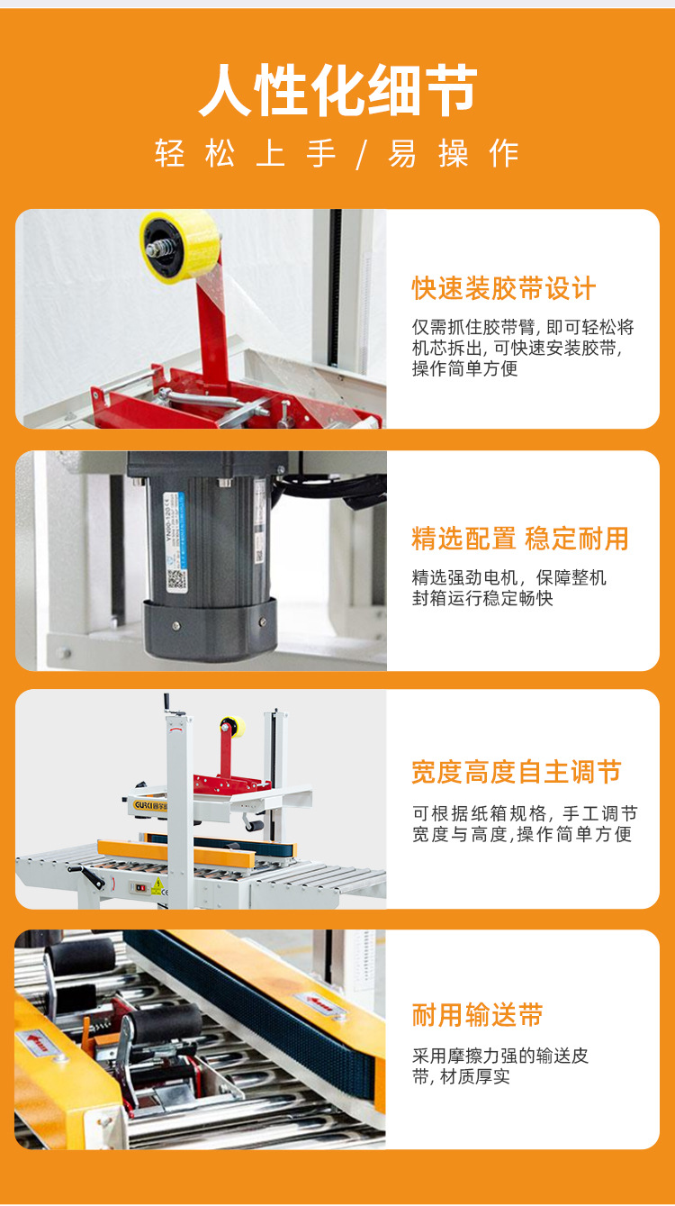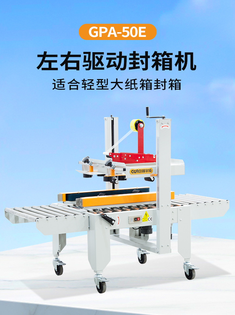 左右驅(qū)動(dòng)封箱機(jī)GPA-50E是兩側(cè)皮帶驅(qū)動(dòng),采用即貼膠帶封口,封箱效果平整??筛鶕?jù)紙箱規(guī)格,手工調(diào)節(jié)寬度與高度,簡單,快捷,方便 可替代人工,是企業(yè)節(jié)省成本,提高生產(chǎn)效率的理想選擇。該款封箱機(jī)廣泛應(yīng)用于食品、醫(yī)藥、玩具、煙草、日化、電子等行業(yè)。