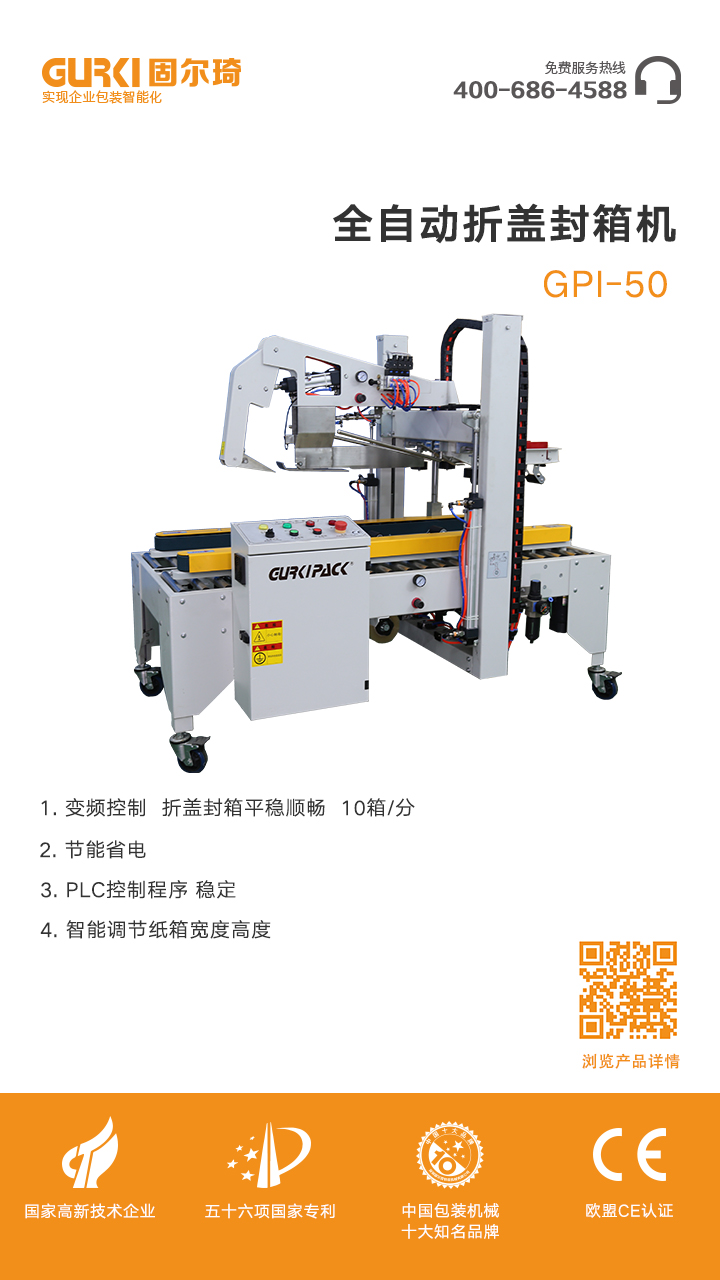 全自動(dòng)折蓋封箱機(jī)自動(dòng)折蓋封箱,封箱作業(yè)一氣呵成,可配合自動(dòng)化包裝機(jī)械系列使用。且能替代人工,提高生產(chǎn)效率,降低成本,可節(jié)省5-10%耗材。該款折蓋封箱機(jī)廣泛應(yīng)用于食品、醫(yī)藥、飲料、煙草、日化、汽車、線纜、電子行業(yè)。