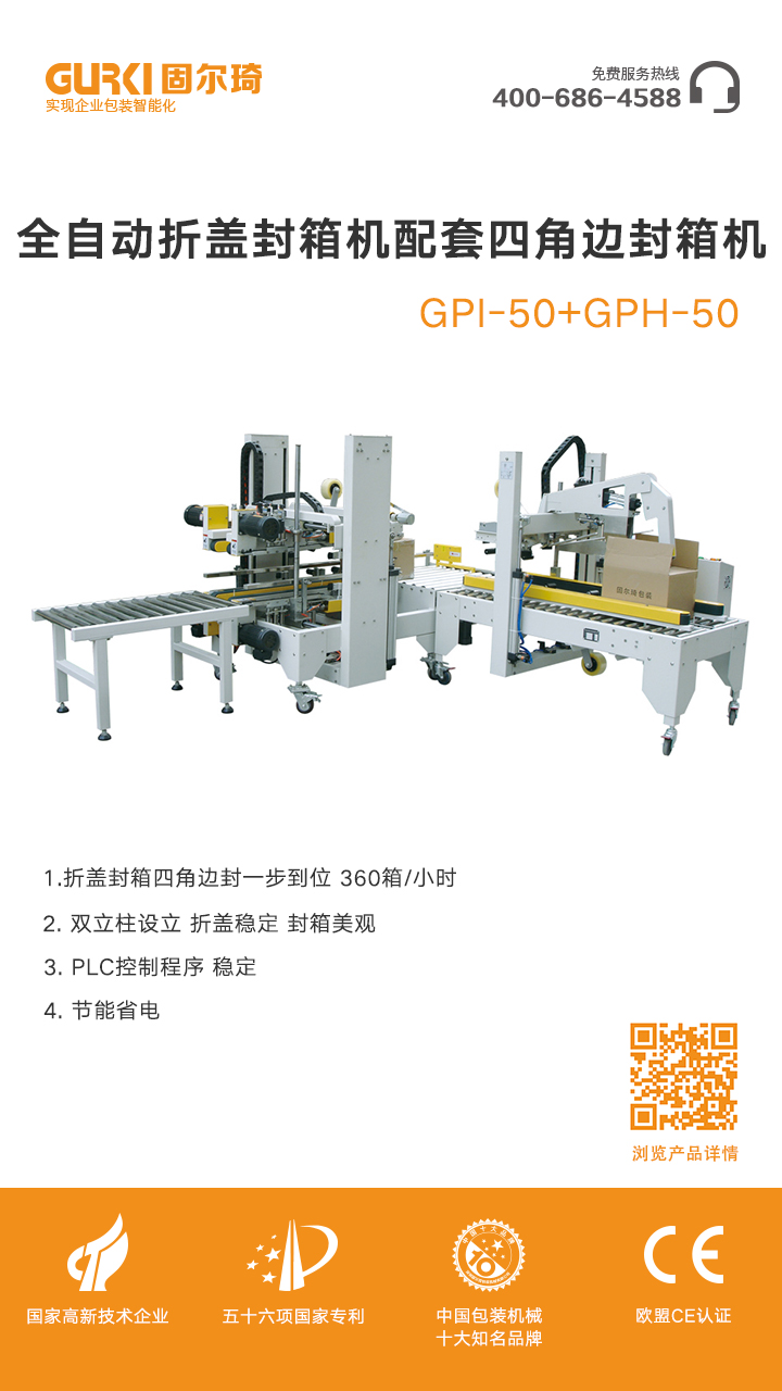 全自動折蓋封箱機(jī)配套全自動四角邊封箱機(jī)適合同一時段對多種規(guī)格紙箱進(jìn)行全自動工字型封箱,無需人工再調(diào)節(jié),不僅節(jié)省人工還提高效率。該款封箱機(jī)廣泛應(yīng)用于食品、醫(yī)藥、日化、玩具、電子、印刷等各行業(yè)。