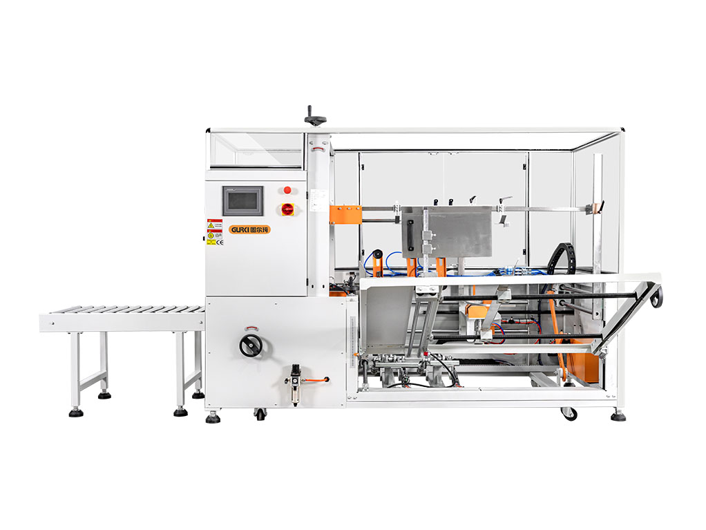 自動開箱機(jī)GPK-50E是自動將疊成紙板的箱板自動打開、箱子底部按程序自動折合成形、下底折葉折曲,并用膠帶密封后輸送給裝箱機(jī)的專用設(shè)備,機(jī)器采用PLC+人機(jī)界面控制,折底不停留,輸送中自動完成折底、封底;同時(shí)完成吸箱、成型、折底、封底整個(gè)過程。操作方便、維修簡單、性能穩(wěn)定。該款開箱機(jī)已廣泛用于食品、醫(yī)藥、飲料、煙草、日化、電子等各行業(yè)。